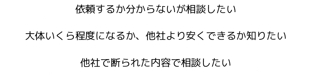 サービスにはっきりと記載されていないことでも、どのような状態のお部屋でも、まずはご相談ください。