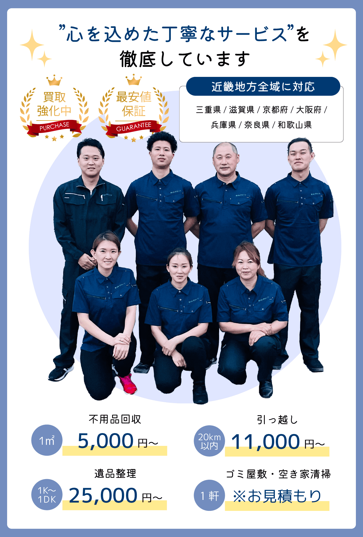 「契約後に追加料金を請求された」「言っていたことをしてくれなかった」「最初と話が違う」などということがないよう、お客様が安心して任せられるようなサービスの”質”は当然のことながら、価格の部分でも安心してご利用いただけるように努めております。
